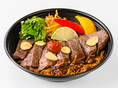 台湾醤油香るブラックライスにガッツリステーキがボリューム満点!