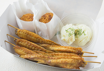| とめ手羽の大人気メニュー3種(とめ手羽・メンチカツ・ポテトサラダ)に季節のデザート2品がついたお得なBOX! みんなでシェアして盛り上がろう! | |