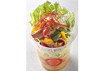 | 唐辛子が食欲をそそり、野菜もお肉も楽しめる大満足なサラダパスタが登場!熱く燃える応援の前に是非! | |