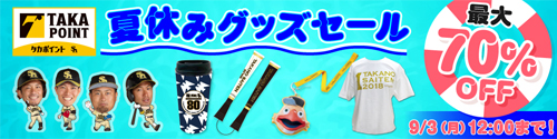 タカポイント交換では、9月3日(月)12:00まで、対象商品が最大70%OFFとなる「夏休みグッズセール」も開催中です!ポイント交換はお早めに!