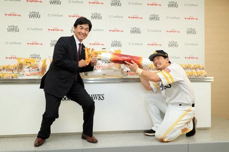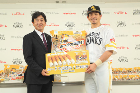 「フジミツ株式会社様」より、同社とホークスとのタイアップ商品「ホークス応援!仙崎ちくわ」が、1年分チームに贈呈されました。