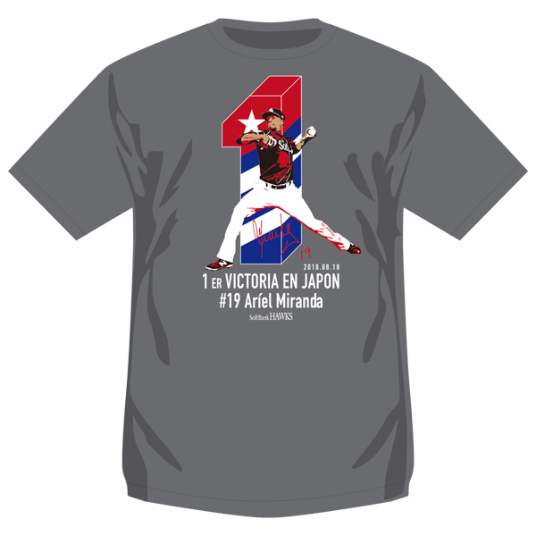 ミランダ投手自身がデザイン監修したプロ初勝利記念Tシャツを受注販売いたします。