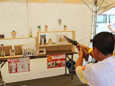 的を倒すとホークスグッズや筑後七国特産品をプレゼント!