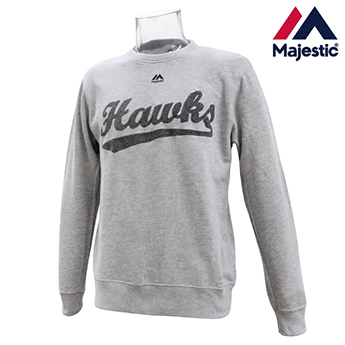 フロントにはホークスロゴをチェーンステッチ風に表現したクルーネックスウェットです。コーディネートしやすいブラックとグレーの2色展開。
