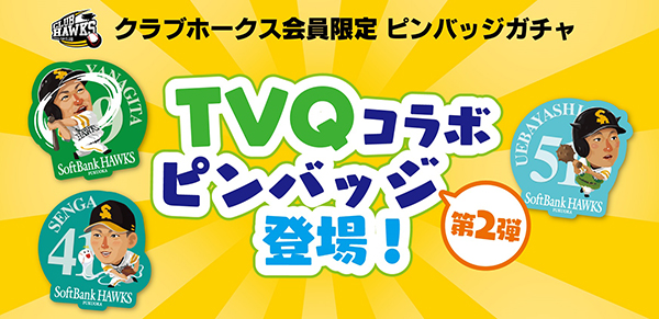 さらに、9月22日(土)よりクラブホークス会員限定ピンバッジガチャコーナーに、TVQコラボピンバッジの第2弾が数量限定で登場します!