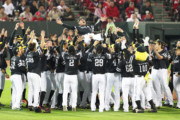 今年初めて宙を舞った工藤公康監督。「選手たちが成長してくれた。頑張りに感謝をしたい」と何度も口にしてきました。