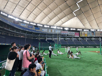 ・試合前のグラウンドに降りてホークスの選手を間近で見て思い出を作ろう!