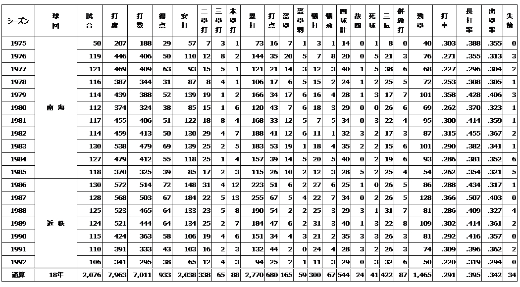 | コーチ経歴 | オリックス・ブルーウェーブ 打撃コーチ (1994~1999) 同二軍監督(2000~2001) |