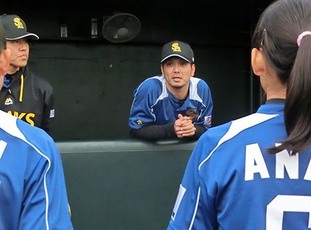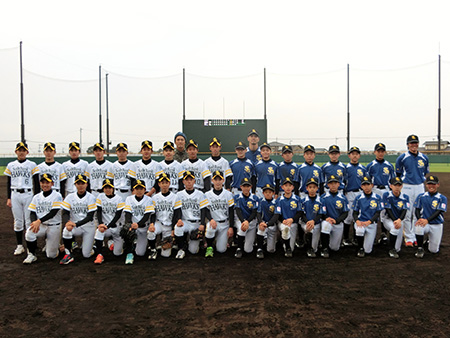 新垣渚監督は「今年のジュニアチームは特徴がないのが特徴です」と笑いつつ、「かなり早い段階からまとまっていた。練習試合もずっと負けなしでしたから」とさらに笑顔を作りました。「子どもたちも自信をつけていると思います。目標はもちろん優勝です」ときっぱり。キャプテンの吉岡大和選手は13期生からのエールに「僕たちが日本一を達成してきます」と力強く応えていました。