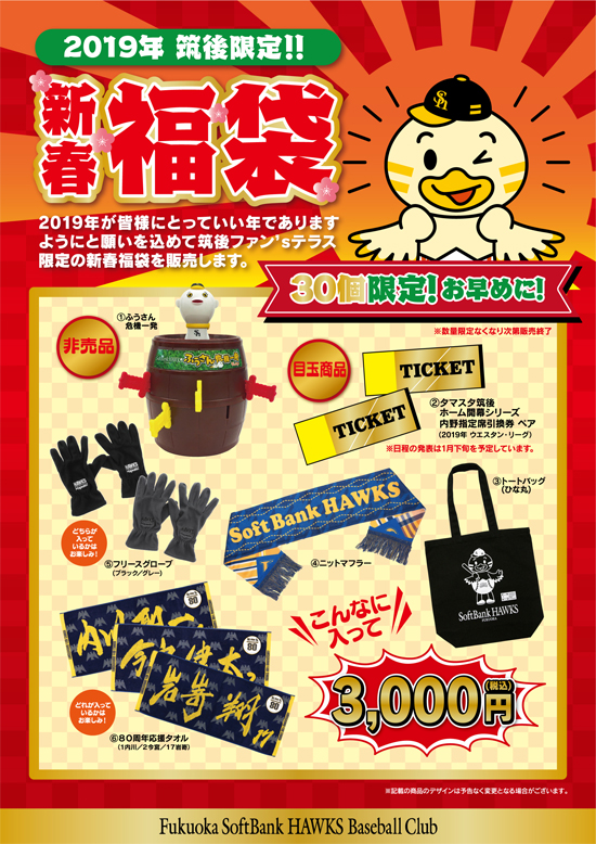 2019年のタマスタ筑後もファンの皆様に楽しんでいただけるよう、筑後らしく楽しく元気に盛り上げていきます!まずはファン’sテラスの初売りが1月8日(火)からスタート!ぜひタマスタ筑後へご来場ください。