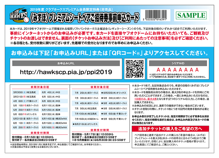 <みずほ>プレミアムシートペアご招待券事前申込カード