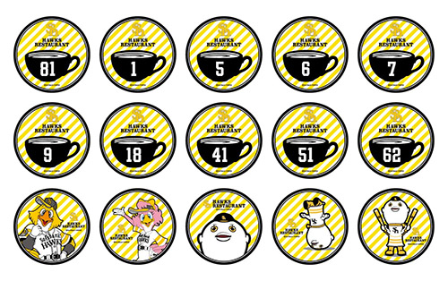 ご来店特典としてお一人様につき「オリジナルランチョンマット」を1枚プレゼント、また、オリジナルドリンクを1杯ご注文につき「オリジナルコースター」を1枚プレゼントします。(デザインは全15種、ランダム配布)さらに、開催期間中、ホークスレストランオリジナルグッズを販売いたします。