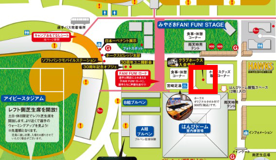 宮崎市生目の杜運動公園 はんぴドーム前 ホークスグッズ販売コーナー横