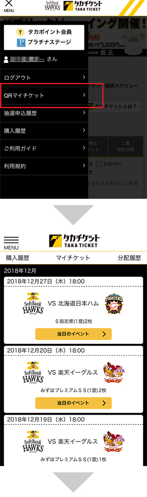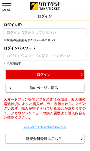 ※チケットの受取をおこなうには、クラブホークス会員(有料)またはタカポイント会員(無料)への会員登録が必要となります。