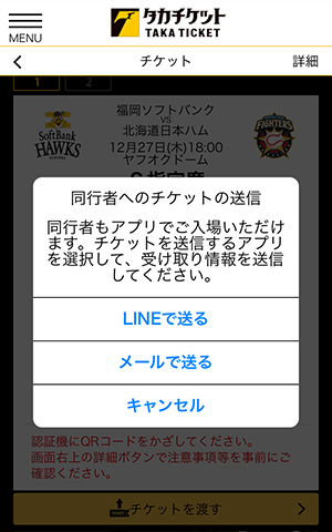 QRチケットは同行者へ事前にLINEやメールでチケットをいつでも簡単に渡すことができます。