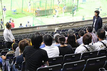 - 見学はバックネット裏〈みずほ〉プレミアムシートからとなります。