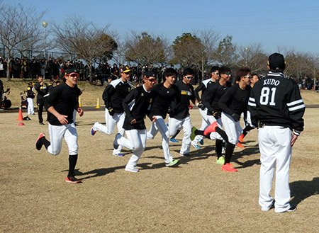 キャンプ序盤は走る、走るの繰り返し。キャンプ恒例の12分間走が行われました。工藤公康監督は「A組のほとんどの選手が(設定距離を)クリアした」と満足げ。A組トップは栗原陵矢選手の3150mでした。