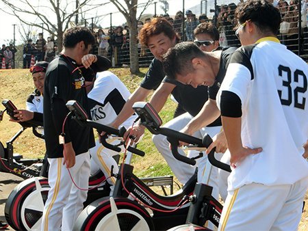 この日、若手投手の場合50mを10本、80mを20本、150mを16本、さらにオフフィートトレーニング(機具などを用いながら心肺機能を強化)にも励みました。