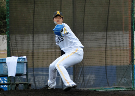 そして午後の打撃練習では、4人の投手が打撃投手で登板しました。武田翔太投手、二保旭投手に次いでマウンドに上がったのがルーキーの甲斐野央投手。いよいよマウンドで「最速159キロ」右腕がお披露目されました。