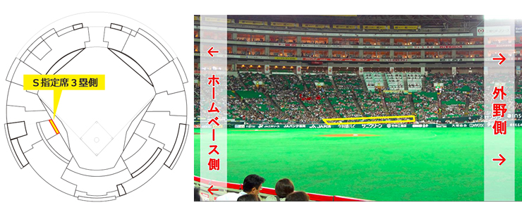 ※前方にはコカ・コーラシートにお座りのお客様がいらっしゃいますので、グラウンドの一部が見えない、または見えづらい場合がございます。