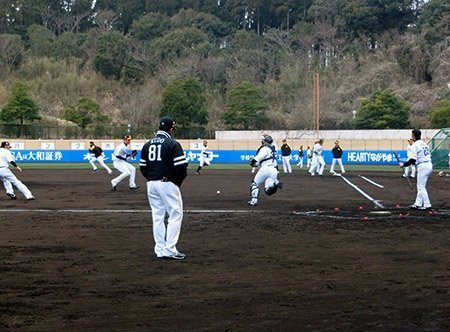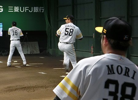 そしてブルペンではサファテ投手が今キャンプ2度目のピッチング。「これまで手術明けで10回目のブルペンだけど、1番良かった。おとといは50%の出来、今日は52%だけど前進しているのを感じている」と笑顔で話していました。サファテ投手の投球をじっと眺めていた森唯斗投手も、その後並んで投げていました。