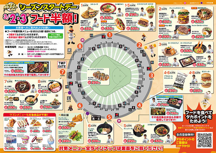 ヤフオクドーム コンコース内および外周デッキで販売する対象フードが全品半額