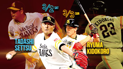 3月2日(土)・3日(日)に、2018年シーズン限りで現役を引退した、攝津正投手、城所龍磨選手の引退企画セレモニアルピッチを実施します。