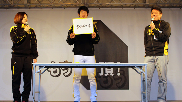 2019年の意気込みやプライベートにちょっと踏み込んだ質問に、選手が「〇」「×」の札で回答しMCとトークを行います。