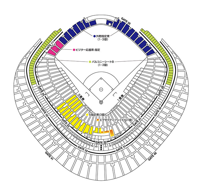 | 1塁側 | SUPER GATE1 | シスコシート | JA全農なごみシート |