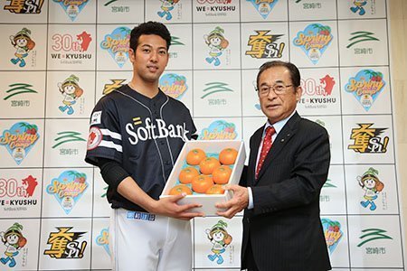 2月23日(土)、出身地の宮崎県串間市の「くしまPR大使」に就任することになり、同日にキャンプ地・アイビースタジアムにて就任式が執り行われました。