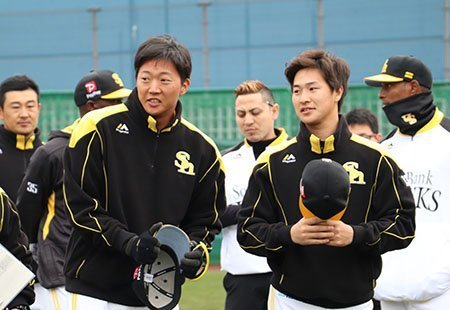 練習を見ながら、内川選手が「なんか他球団の見てると楽しいよね。どんな練習してるかとか、すげーバッターだなとか思う。ワクワクしてくるよね。」と、練習とはまた違った真剣な目をしていました。