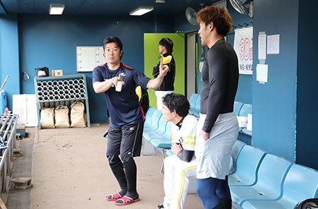 ですが、自主練を行っているのは選手たちだけではありません。今年からバッティングピッチャーとなった伊藤祐介さん。同じくバッティングピッチャー兼広報の柳瀬さんに付き合ってもらい、残ってピッチングを行っていました。チームを支える存在として、がんばってますよ!