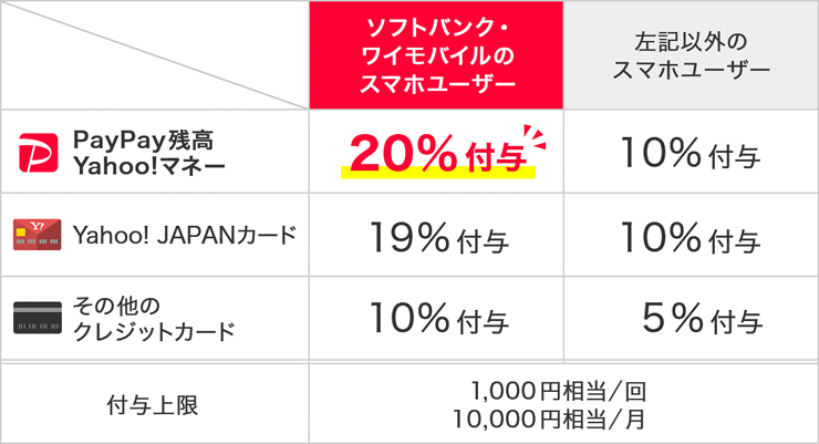 このキャンペーン期間中のPayPayボーナス付与上限は、支払い方法にかかわらず、1人につき月1万円相当、また1回の支払いにおける付与上限は1,000円相当となります。