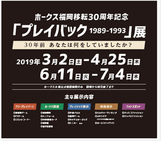 福岡 ヤフオク!ドームの外野席後方に新たに誕生した「LEFTOP SPACE」(レフトップスペース)にて、本拠地福岡移転30周年を記念した企画展を3月2日から開催。移転当初の1989年から1993年頃に起こった出来事や流行したおもちゃ、マンガ、音楽、ゲーム、ファッションなどを展示します。平成初期のこの時代を体験された方はもちろん、当時を知らない方もお楽しみいただけます。