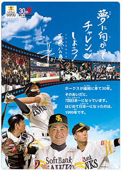 福岡移転後初となる1999年の優勝時の写真と、昨年2018年日本一の胴上げ写真をデザインしています。