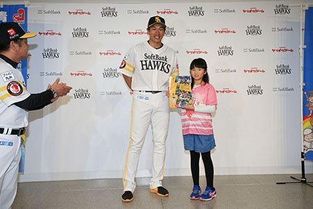 そして児童代表の「素敵なプレゼント、ありがとうございました。私はハニーズ・ダンススクールに通っています。これからもホークスを一生懸命応援します」との言葉に、工藤監督も柳田選手も笑顔。日々近づいていくシーズン開幕へ、気を引き締め直していました。