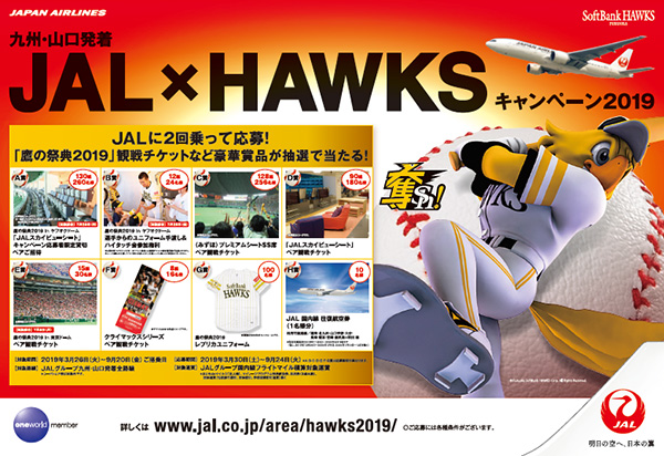 JALは2019年も「九州・山口発着 JAL×HAWKS キャンペーン 2019」を実施します。