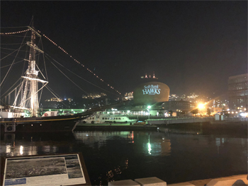 世界新三大夜景に認定されている「長崎の夜景」でも有名な観光スポットである「稲佐山電波塔」を、試合日前日からホークスを象徴するカラーにライトアップします。さらに、長崎の海の玄関となる「長崎港ターミナルビル」の壁面へ、「WE=KYUSHUロゴ」やホークス選手肖像を投影し、いつもと違った幻想的な港町長崎を演出します。