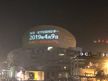 WE=KYUSHUロゴや選手ビジュアルを投影し、長崎開催試合を盛り上げます。
