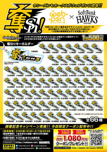 限定グッズ販売サイト『ウェブポン』から【ホークス2019~開幕編~】が販売中!!