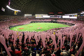 2006年に「女子高生デー」の名称でスタートした女性ファン向けのイベントが2014年から、より多くのホークスを愛する女性ファンに楽しんでもらいたいという思いを込めて、「タカガール♡デー」へとスケールアップし、女性入場者全員に毎年オリジナルのタカガールユニフォームをプレゼントして球場をピンク一色に染めるイベントです。(ビジター応援席を除く)