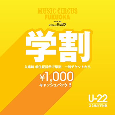 入場時、学生証提示で早割・一般チケットから1,000円キャッシュバック!