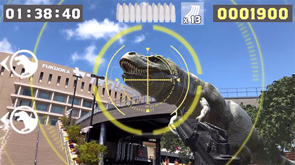 ドームに恐竜たちが出現。ARガンで襲いかかってくる恐竜たちを倒そう!