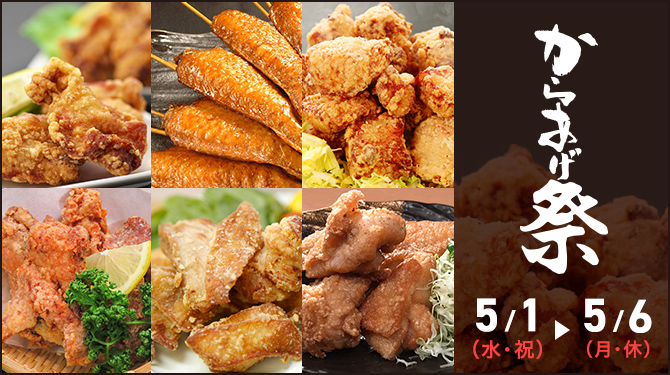 昨年大好評だった『からあげ祭』を、今年も5/1(水・祝)~5/6(月・休)で開催します。