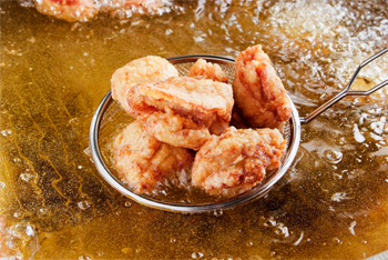 秘伝のタレに付けて素揚げし、最後にオリジナルの厳選塩のみ、といったシンプルな調理法。