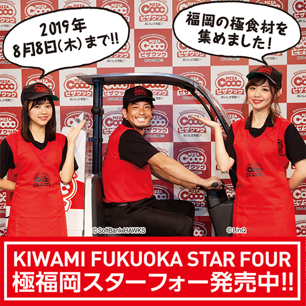 ホークス松田選手とLinQ高木悠未さん新木さくらさんがTVCM共演!ピザクックの新商品『極福岡スターフォー』が期間限定割引価格で新登場!