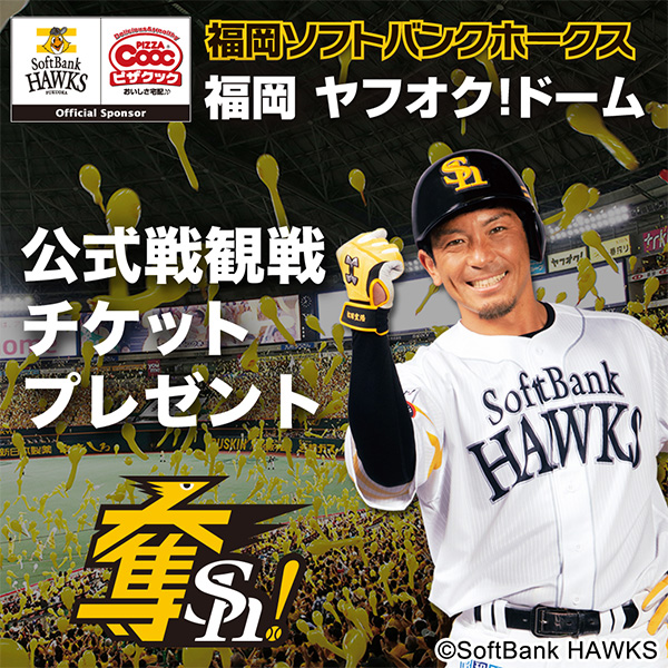 ただ今コカ・コーラシートやみずほプレミアムシート、内野S席など140組280名様にあたるホークスチケットプレゼントキャンペーン実施中!