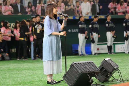 豪華ゲストも来場して試合前から華やかなムードに。国歌独唱は福岡出身の歌手、川嶋あいさんが登場しました。透明感抜群の歌声で君が代を披露。試合前の独特な緊張感がさらに引き締まりました。川嶋さんは「ものすごく広くて、お客さんもたくさんいてめちゃくちゃ緊張しました。ホークスは地元福岡のチーム。特別な思いがありましたし、名誉で光栄なこと。ずっと応援していた身なので、このような日を迎えられたのが驚いています」と話しました。