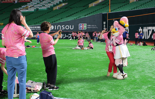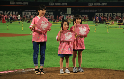 内容:試合開始直前、選手シート発表前に守備位置についていただき、コールされた選手を出迎えていただきます。
