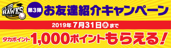本日より、公式ファンクラブ クラブホークスのお友達紹介キャンペーン第3弾を開始します。